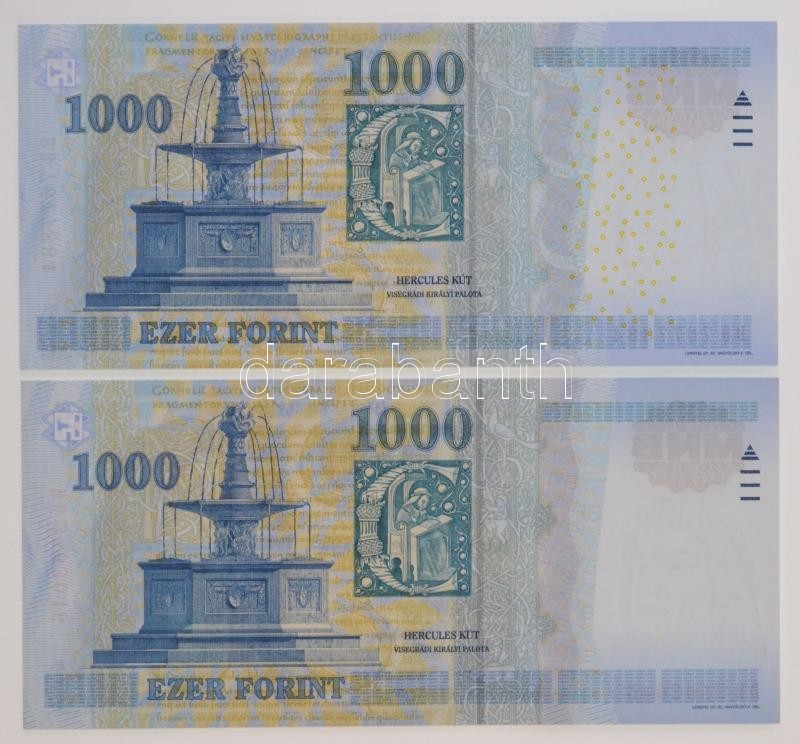2007. 1000Ft "DB" + 2012. 1000Ft "DB" T:I https://www.darabanth.com/hu/332-Gyorsarveres/332.0/Numizmatika/Magyar-bankjegyek~1000006/2007-1000Ft-DB-plus-2012-1000Ft-DB-TI~II1854203
