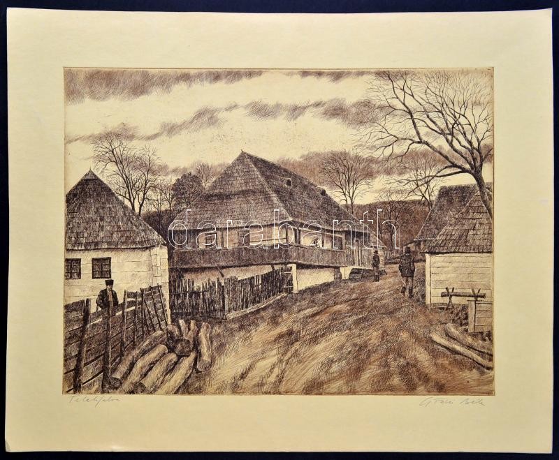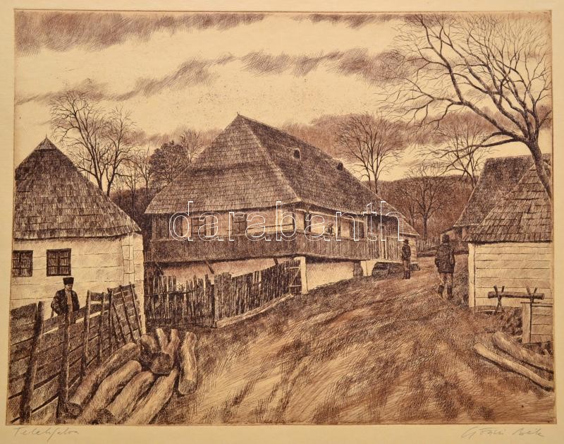 Gönczi Béla (1934-): Telekfalva, rézkarc, papír, jelzett, 40×49 cm https://www.darabanth.com/hu/333-Gyorsarveres/333.0/Festmenyek-es-grafikak/Festmenyek-es-grafikak~500002/Gonczi-Bela-1934-Telekfalva-rezkarc-papir-jelzett-40C39749-cm~II1869064