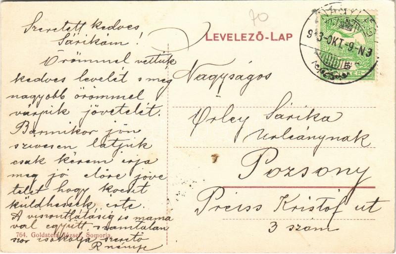 Leírás: Nagylég, Velké Lehnice, Velki Leg; Benyovszky kastély. Kiadja Goldstein József / castle (ázott sarok / wet corner)