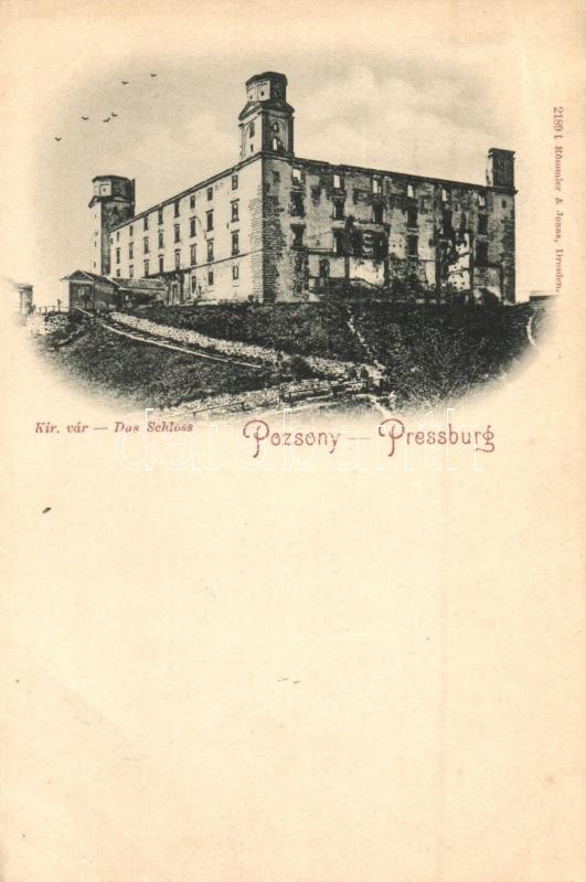 Pozsony, Pressburg, Bratislava; Vár. Römmler & Jonas 2189t. / Schloss ... https://www.darabanth.com/hu/333-Gyorsarveres/333.0/Kepeslapok/Felvidek~1000007/Pozsony-Pressburg-Bratislava-Var-Rommler-Jonas-2189t-Schloss-castle-Rb~II1865929