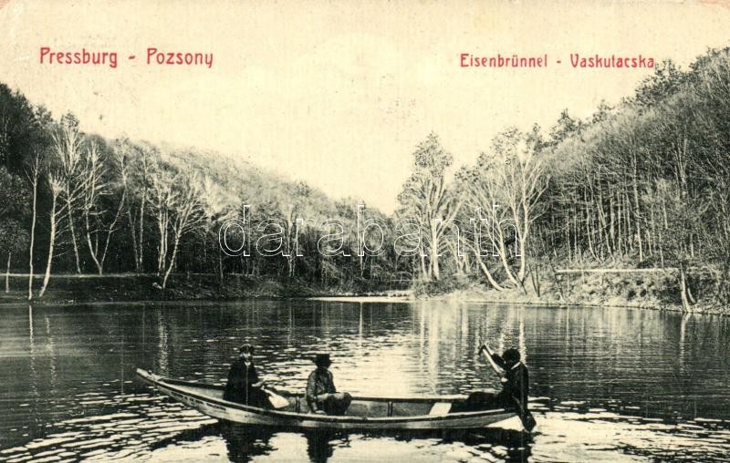 Leírás: Pozsony, Pressburg, Bratislava; Vaskutacska-tó. W.L. Bp. 2420. Josef Skoda kiadása / Eisenbrünnel (Eisenbründl) / Zelezná Studénka, lake (kopott sarkak / worn corners)