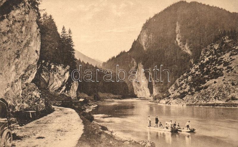 Leírás: Tátra, Tatry; Dunajeci hajózás / Pieniny, Hukowa skala z lodziami. Naklad A. Szuberta / raft, boat