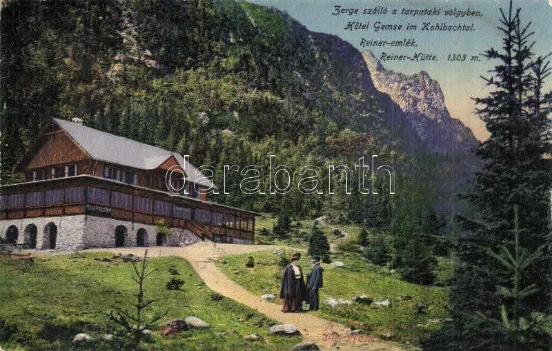 Leírás: Tátra, Tatry; Tarpataki-völgy, Zerge szálló, Reiner emlék / Hotel Gemse in Studená dolina