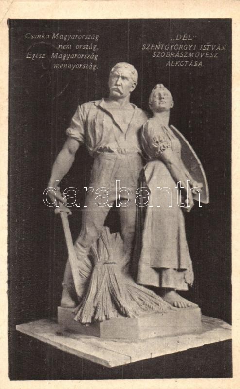 Csonka Magyarország nem ország. Egész Magyarország mennyország. "Dél" Szentgyörgyi István szobrászművész alkotása (Budapest, Trianon szoborcsoport). A szobrokat a magyar nemzet adakozásából emeltette a Védőligák Szövetsége / Hungarian irredenta propaganda, statue (EK)