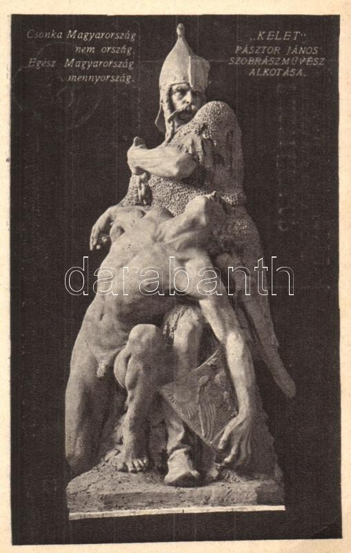 Csonka Magyarország nem ország. Egész Magyarország mennyország. "Kelet" Pásztor János szobrászművész alkotása (Budapest, Trianon szoborcsoport). A szobrokat a magyar nemzet adakozásából emeltette a Védőligák Szövetsége / Hungarian irredenta propaganda, statue (EK)