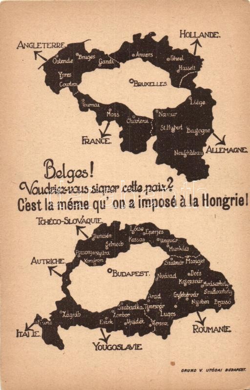Ha a trianoni békét a győzőkre szabták volna. A megcsonkított Belgium, Magyar Nemzeti Szövetség, Grund V. utódai / map of a lesser Belgium, Hungarian irredenta propaganda (EK)