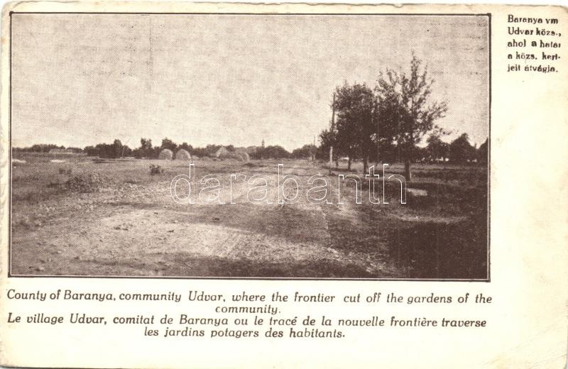 Magyarország trianoni lehetetlen határai; Baranya vármegye, Udvar község. Magyar Nemzeti Szövetség kiadása / Impossible borders of Hungary after Trianon, irredenta propaganda (EK)