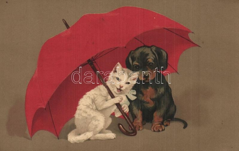 Cat and dog under umbrella. Meissner & Buch Künstler-Postkarten Serie ... https://www.darabanth.com/hu/333-Gyorsarveres/333.0/Kepeslapok/Kutya~1000063/Cat-and-dog-under-umbrella-Meissner-Buch-Kunstler-Postkarten-Serie-1943-litho~II1870824