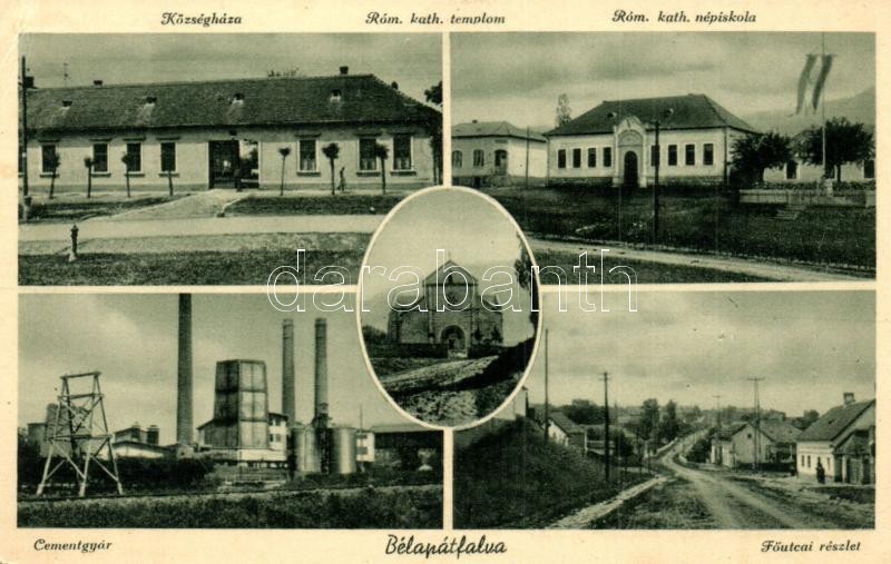 Leírás: Bélapátfalva, Községháza, Római katolikus templom és népiskola, cementgyár, Fő utca (EK)