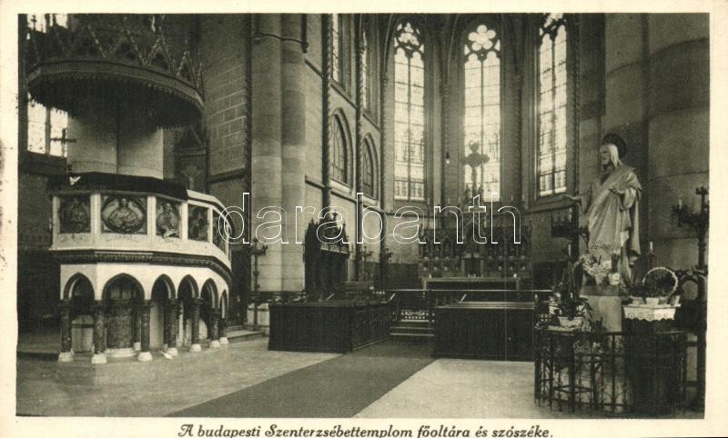 Budapest VII. Szent Erzsébet templom, főoltár és szószék, belső https://www.darabanth.com/hu/333-Gyorsarveres/333.0/Kepeslapok/Magyarorszag~1000005/Budapest-VII-Szent-Erzsebet-templom-fooltar-es-szoszek-belso~II1864467