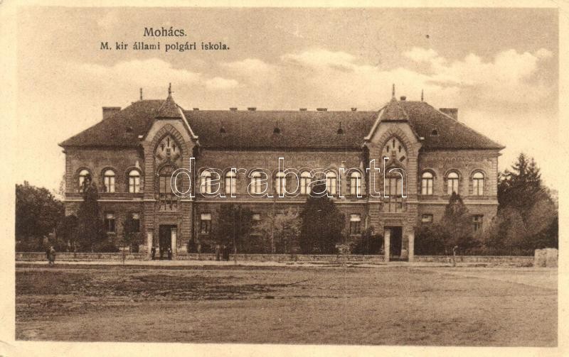 Leírás: Mohács, M. kir. állami polgári iskola. Kiadja Fridrich Oszkár (EK)