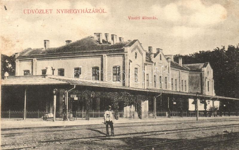 Leírás: Nyíregyháza, Vasútállomás, vasutas. Kiadja Borbély Sámuel (EK)