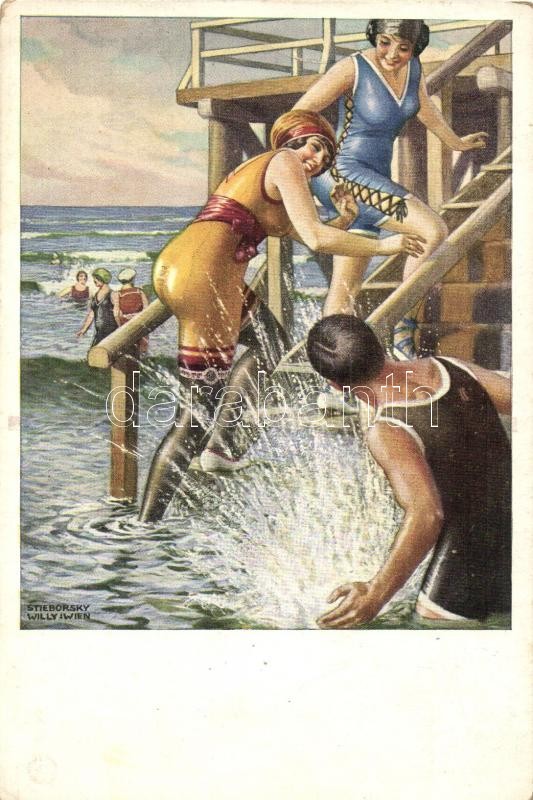 Bathing people at the beach, humor. Novitus Verlag Otto Kellner. 920/4... https://www.darabanth.com/hu/333-Gyorsarveres/333.0/Kepeslapok/Muveszlapok~1000067/Bathing-people-at-the-beach-humor-Novitus-Verlag-Otto-Kellner-9204-s-Willy-Stieborsky-EK~II1861982
