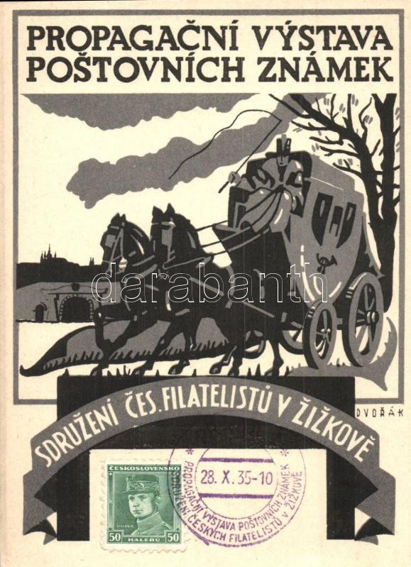 Leírás: 1935 Propagacní vystava postovních známek. Sdruzeni Ces. Filatelistu v Zizkove; 26-28. X. 1935 / Czechoslovakian Postage Stamp Exhibition in Prague. s: Dvorák + 1935 Praha Propagacní Vystava Postovních Známek So. Stpl. (EK)