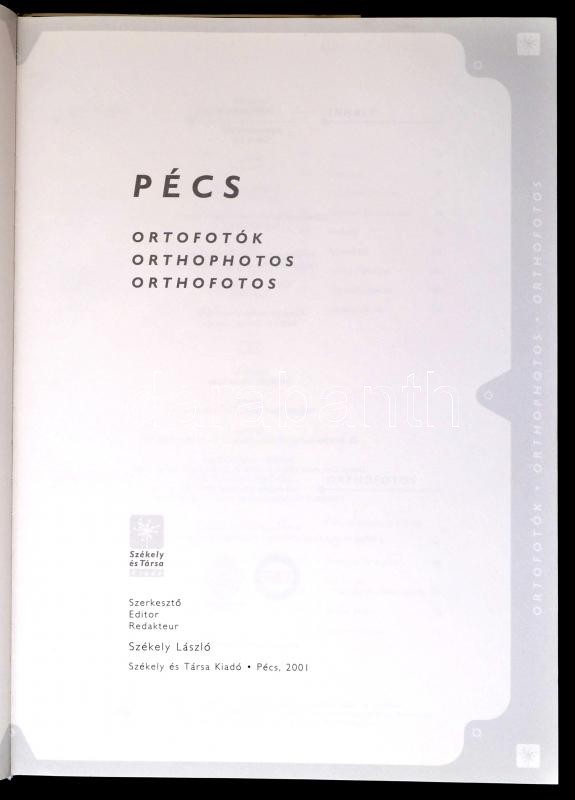 Leírás: Pécs. Ortofotók. Szerk.: Székely László. Pécs, 2001, Székely és Társa Kiadó. Kartonált papírkötésben, papír védőborítóval, jó állapotban.
