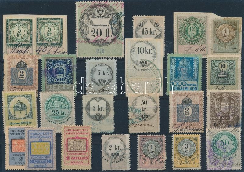 Leírás: Magyar és osztrák okmánybélyegek, összesen 25 db