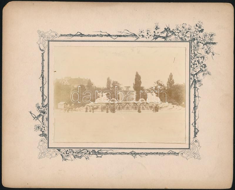 Leírás: 1895 München, Wittelsbach Brunnen, szecessziós kartonra ragasztott fotó, 8×11 cm