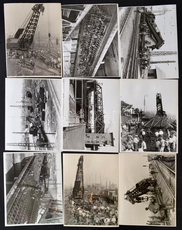 Leírás: 1956-1958 Vasútépítés gőzdaruval 9 db fotó 24x19 cm