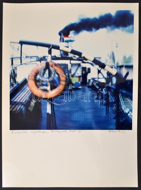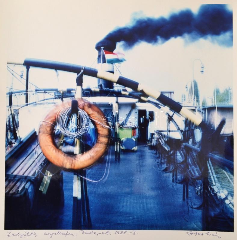 1988 Budapest, Végleg kikötve, a székesfehérvári Tóth István (?-?) vintage fotóművészeti alkotása, szerző által feliratozva, a magyar fotográfia avantgarde korszakából, 39x28,5 cm