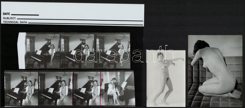 Az emancipáció kezdő lépései, szolidan erotikus felvételek, 8 db vintage negatív + 10 db vintage fotó és/vagy mai nagyítás, 24x36 mm és 25x18 cm között, a negatívok és a pozitív képek között nincs összefüggés
