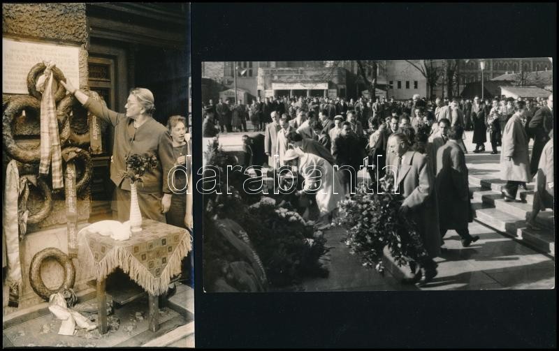 Leírás: Megemlékezések Budapesten, egyiken Korányi Frigyes emléktáblája, 2 db fotó, 12×18 és 18×10 cm