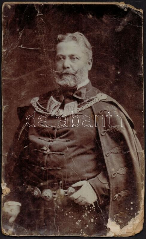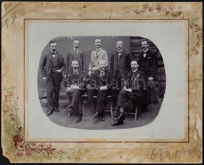 cca 1900 Úri társaság és díszmagyaros úr fotója (Strelisky), az utóbbi sérült, a másik kartonja sérült, foltos, a felületén sérüléssel, 22x13 cm és 17x23 cm