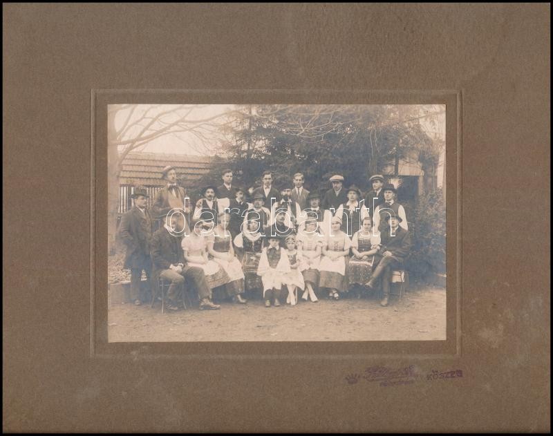 Leírás: cca 1910-1920 Kőszeg, társaság ünneplőben, kartonra kasírozott, pecséttel jelzett fotó, 12×16,5 cm