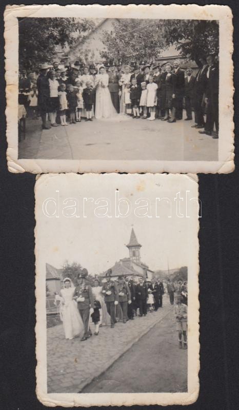 Leírás: cca 1940 Csendőrök esküvője, 2 db fotó, 6×9 cm