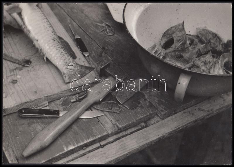 Leírás: cca 1950-1960 Szeberényi György (?-?): Halpucolás, pecséttel jelzett, vintage fotóművészeti alkotás, 24x17 cm