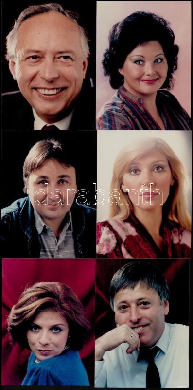cca 1969 Színész portrék aláírva - Mikó István, Bencze Ilona, Szuhay Balázs, Mányai Zsuzsa, 4 db vintage portrékép, 14x10 cm + cca 1969 Színész portrék aláírva - Verebes Károly, Tarsoly Elemér,Trokán Péter, Zsadon Andrea, Verebély Iván, 5 db vintage portrékép, 14x10 cm
