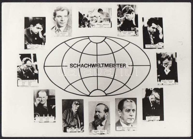 cca 1970 Sakkvilágbajnokok / Chess world champions. 18x14 cm https://www.darabanth.com/hu/333-Gyorsarveres/333.0/Mutargy-papirregiseg-egyeb/Foto~500022/cca-1970-Sakkvilagbajnokok-Chess-world-champions-18x14-cm~II1864540