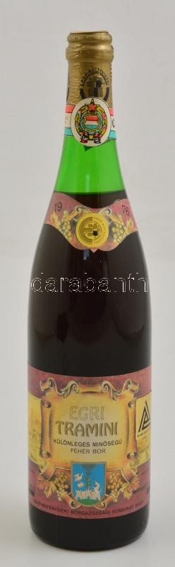 1976 Egri Tramini különleges minőségű fehér bor, 0,7 l https://www.darabanth.com/hu/333-Gyorsarveres/333.0/Mutargy-papirregiseg-egyeb/Muzealis-borok-italok~500016/1976-Egri-Tramini-kulonleges-minosegu-feher-bor-0-7-l~II1865322