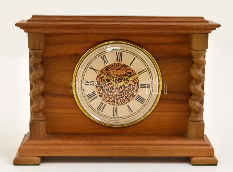 Leírás: Felhúzós vekker, asztalra állítható fa tokban, működik, 25×17×6 cm