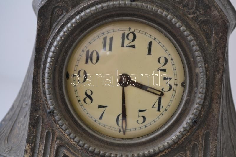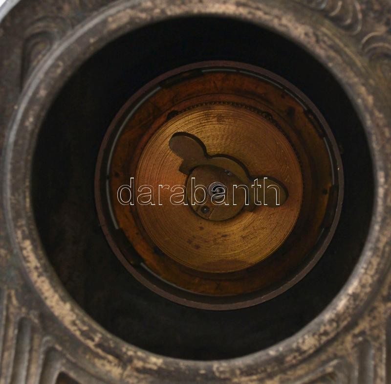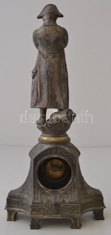 Leírás: Napóleon figurás kandalló óra, spiáter, hiányos, nem működik, m:47,5 cm