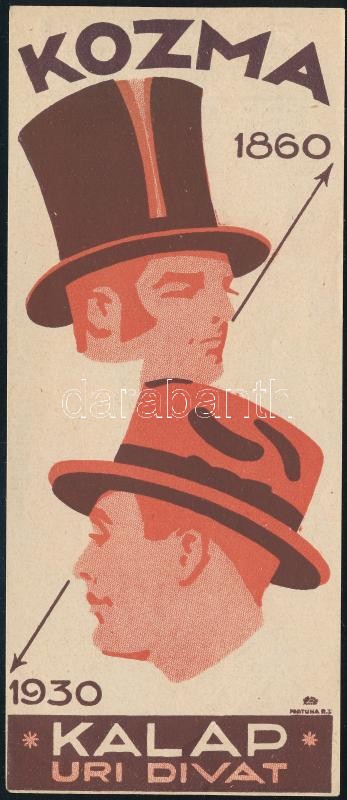 1930 Kozma Lajos budapesti kalapüzletének reklámos számolócédulája https://www.darabanth.com/hu/333-Gyorsarveres/333.0/Mutargy-papirregiseg-egyeb/Reklam~500025/1930-Kozma-Lajos-budapesti-kalapuzletenek-reklamos-szamolocedulaja~II1869379