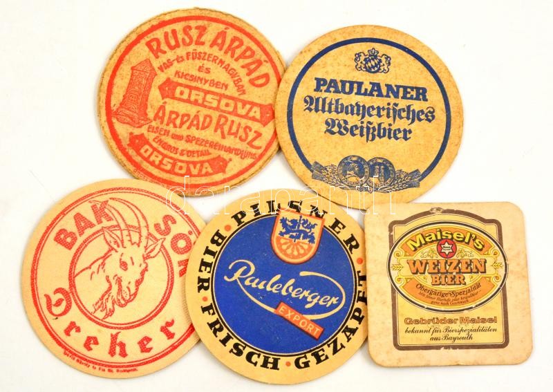 Leírás: 5 db söralátét (Maisel's Weizen Bier, Dreher Bak Sör, stb.)