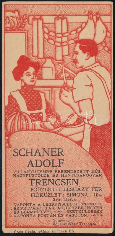 Schaner Adolf Húsnagyfüstölde és Hentesárugyár Trencsén számolócédula https://www.darabanth.com/hu/333-Gyorsarveres/333.0/Mutargy-papirregiseg-egyeb/Reklam~500025/Schaner-Adolf-Husnagyfustolde-es-Hentesarugyar-Trencsen-szamolocedula~II1868662