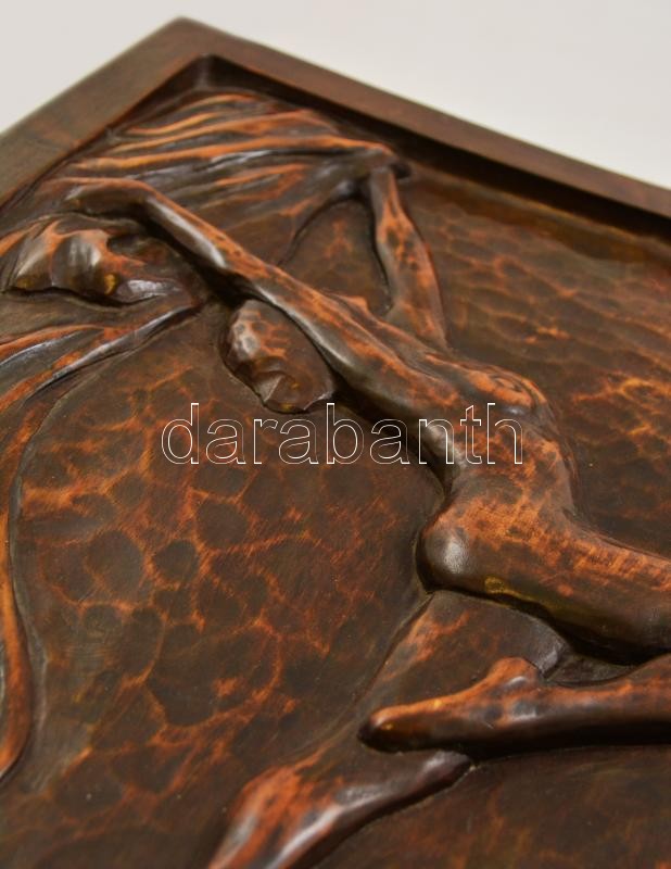 Leírás: J.Wechter jelzéssel: Art deco táncoló akt, Faragott fa dombormű (falikép), 36×26 cm (42×32cm)