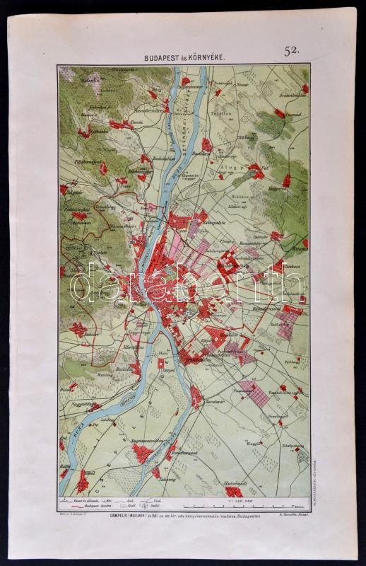 Leírás: Budapest és környéke térképe, Lampel R. - Athenaeum, 37×23,5 cm