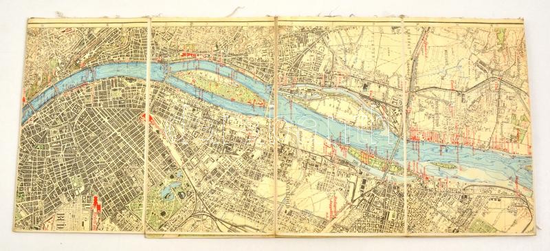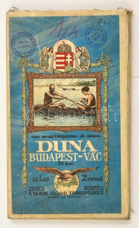 Vízi sporttérképek 5.: a Duna a Budapest-Vác szakaszának térképe, 1:25000, M. Kir. Állami Térképészet, vászonra ragasztva, intézményi bélyegzőkkel, 42×192 cm