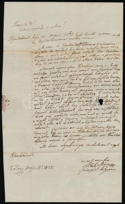 1858 Székely Mózes (1805-1862) unitárius püspökhelyettes levele Délfal... https://www.darabanth.com/hu/333-Gyorsarveres/333.0/Mutargy-papirregiseg-egyeb/Tortenelmi-dokumentumok-keziratok-erdekessegek~500020/1858-Szekely-Mozes-1805-1862-unitarius-puspokhelyettes-levele-Delfalvara-viszaszpecsettel~II1863991