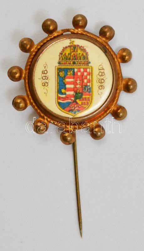 Leírás: 1896 Millenniumi réz kitűző jelvény címerrel, h: 5 cm
