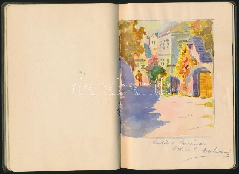 1926-1928 Emlékkönyv számos érdekes írással, egy akvarellel, korabeli ... https://www.darabanth.com/hu/333-Gyorsarveres/333.0/Mutargy-papirregiseg-egyeb/Tortenelmi-dokumentumok-keziratok-erdekessegek~500020/1926-1928-Emlekkonyv-szamos-erdekes-irassal-egy-akvarellel-korabeli-illusztralt-vaszon-ko~II1869961