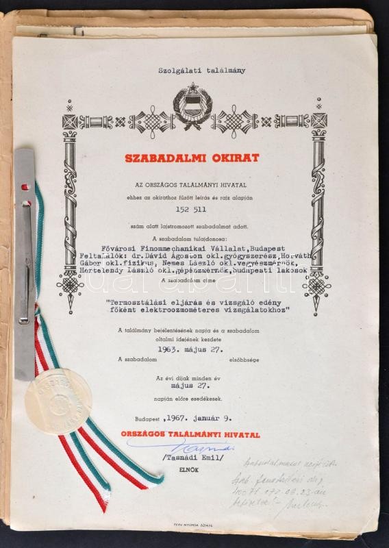 1963-1967 Ozmométer szabadalmi iratai, szabadalmi leírása, okirata, do... https://www.darabanth.com/hu/333-Gyorsarveres/333.0/Mutargy-papirregiseg-egyeb/Tortenelmi-dokumentumok-keziratok-erdekessegek~500020/1963-1967-Ozmometer-szabadalmi-iratai-szabadalmi-leirasa-okirata-dokumentacioja-stb-papC3~II1862763