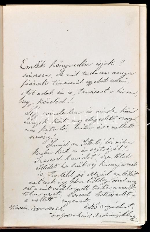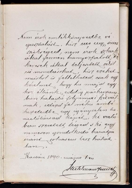 cca 1888 dr. nemes Grosschmid Géza (1872-1934) királyi közjegyző, a kassai jogászkamara elnöke, csehszlovák szenátor és Márai Sándor apjának gyermekkori emlékkönyve családi és rokoni bejegyzésekkel. Egészbőr kötés. Lapok kijárnak.