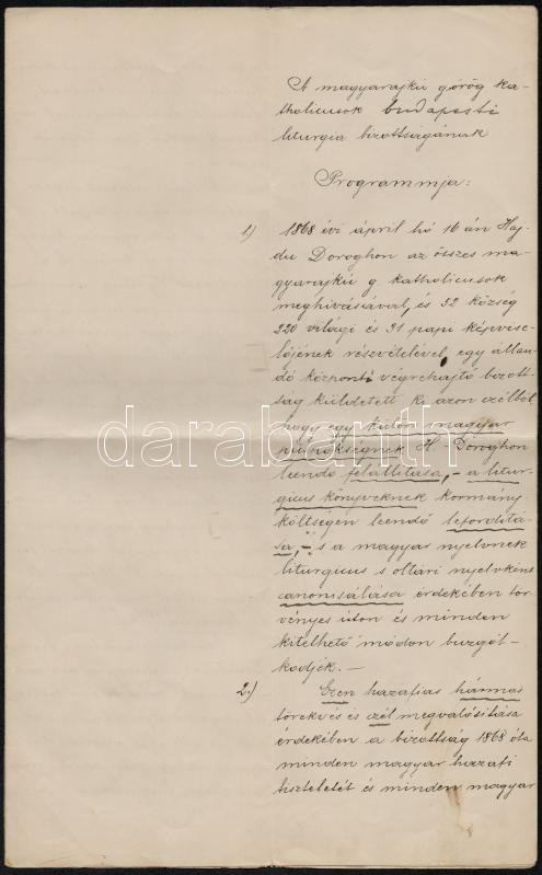 cca 1896 A magyarajkú görög katholikusok budapesti liturgiabizottságán... https://www.darabanth.com/hu/333-Gyorsarveres/333.0/Mutargy-papirregiseg-egyeb/Tortenelmi-dokumentumok-keziratok-erdekessegek~500020/cca-1896-A-magyarajku-gorog-katholikusok-budapesti-liturgiabizottsaganak-programja-kezzel-ir~II1860616