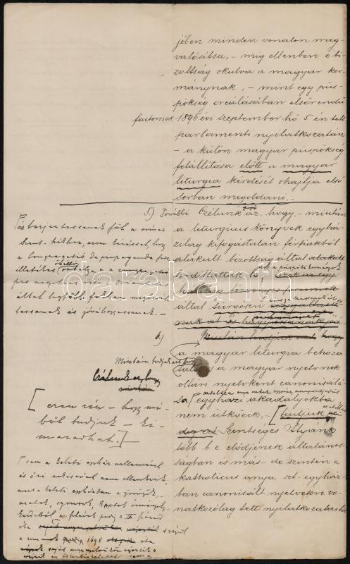 Leírás: cca 1896 A magyarajkú görög katholikusok budapesti liturgiabizottságának programja, kézzel írt fogalmazvány, 8 p.