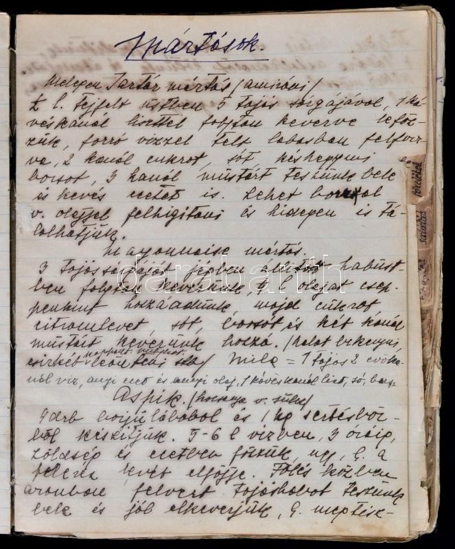 cca 1917 Kézzel írt szakácskönyv. Korabeli egészvászonkötésben, megviselt állapotban, laza fűzéssel, egy-két lap kijár, pár lap sérült, szakadt, foltos,