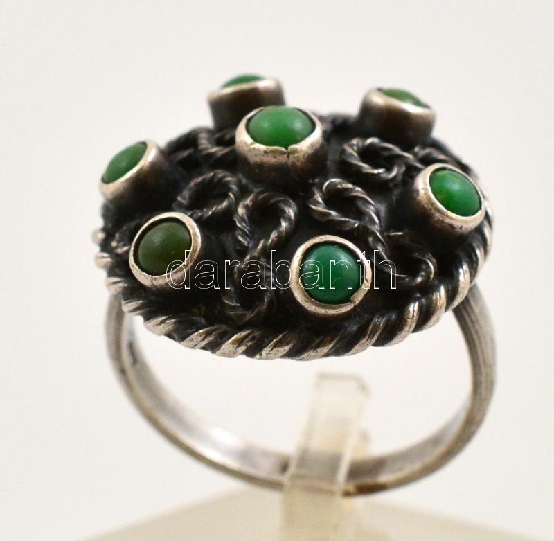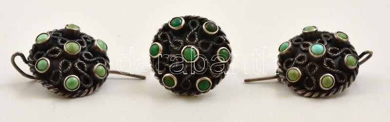Leírás: Ezüst(Ag) ékszerszett, apró kövekkel (fülbevalópár, gyűrű), méret: 54, bruttó: 21,3 g