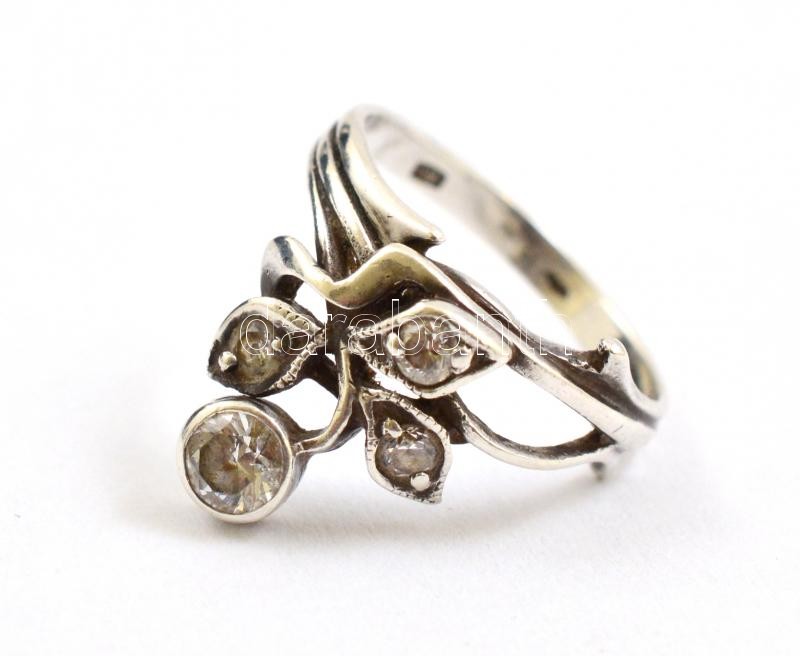 Leírás: Ezüst(Ag) levélmotívumos, apró kövekkel díszített gyűrű, jelzett, méret: 49, bruttó: 2,1 g